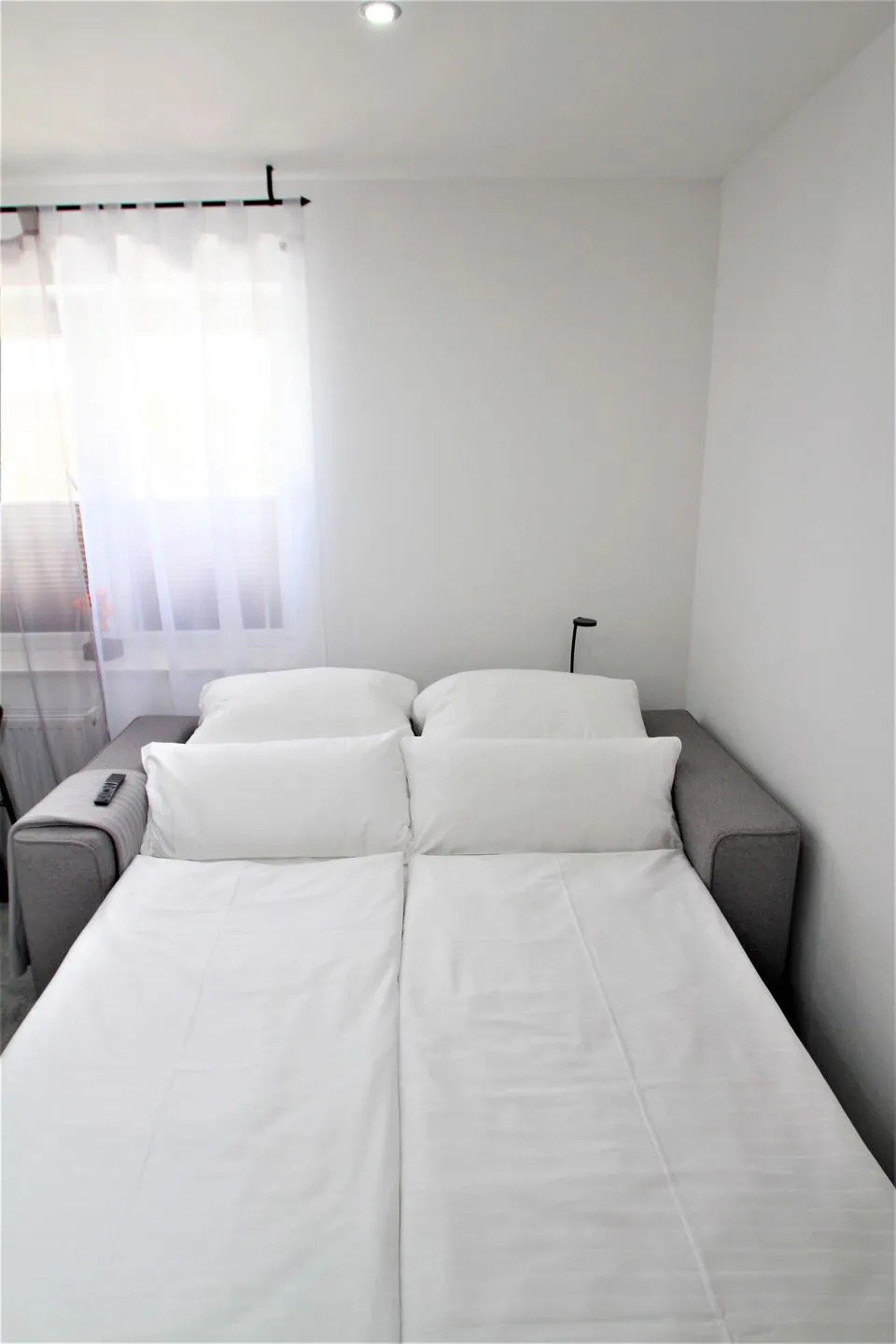 Die 60 m² große Ferienwohnung befindet sich im Erdgeschoss und empfängt Sie mit einer harmonischen Mischung aus moderner Eleganz und wohltuender Gemütlichkeit. Schon beim Betreten spüren Sie die besondere Atmosphäre dieses Ortes: stilvolles Design, eine durchdachte Raumaufteilung und hochwertige Ausstattung schaffen ein Ambiente, in dem Sie sich sofort wohlfühlen. Das Schlafzimmer verfügt über ein komfortables Doppelbett sowie ein Etagenbett (90 x 200 cm) – ideal für Familien mit Kindern oder Freunde, die zusammen reisen. Im Wohnzimmer lädt eine gemütliche Schlafcouch zum Entspannen ein und bietet weiteren Gästen eine angenehme Übernachtungsmöglichkeit. Ein geräumiger Schrank sorgt für ausreichend Stauraum für Ihr Gepäck, und für noch mehr Komfort sind Steckdosen in der Nähe vom Bett, sowie ein Bügelbrett und Bügeleisen vorhanden.